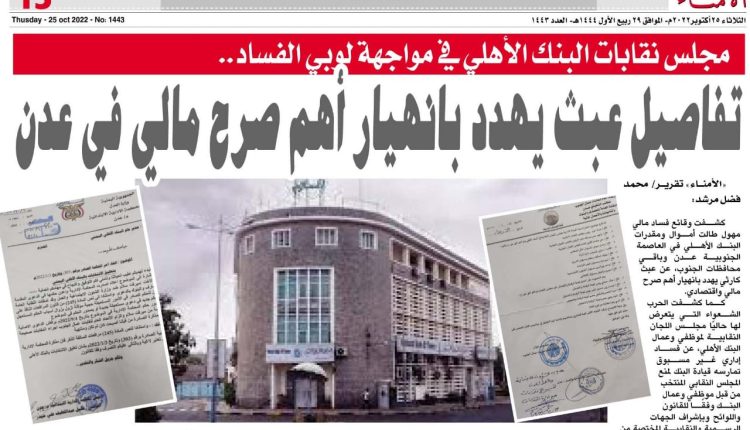 مع تصاعد عمليات الفساد والنهب التي تطال مؤسساتها الإيرادية.. تواصل فضائح الفساد التي تضرب البنوك الحكومية بعدن..!