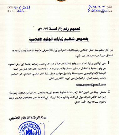 وأقرت ما تسمى “هيئة الإعلام الجنوبي” سحب سلطة حكومة معين ووزارة الإعلام بشأن إصدار تراخيص وتصاريح دخول الوفود الإعلامية الأجنبية إلى الجنوب.