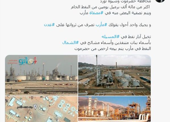 من جانبهم يرى آخرون بأن ما تحدثت به حكومة معين حول نفط مأرب “محض كذب” مشيرين إلى أن شبوة وحضرموت تصدران نحو 100 ألف برميل نفط يومياً إلى مصافي صافر في مأرب ليتم إعادة تكراره وارساله إلى عدن.