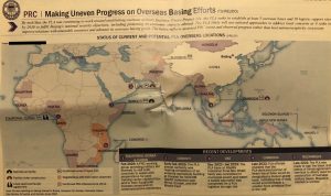 حاليًا، جيبوتي هي الموقع الخارجي الوحيد الذي تمتلك فيه الصين قاعدة معترف بها، افتتحت رسميًا في عام 2017 من قبل بحرية جيش التحرير الشعبي. هناك، وفقًا للوثيقة، كان جيش التحرير الشعبي في شباط / فبراير “شبه مؤكد على وشك الانتهاء من بناء عمليات الهوائي في دوراليه”، للتجسس عبر الأقمار الصناعية فوق إفريقيا وأوروبا والشرق الأوسط.