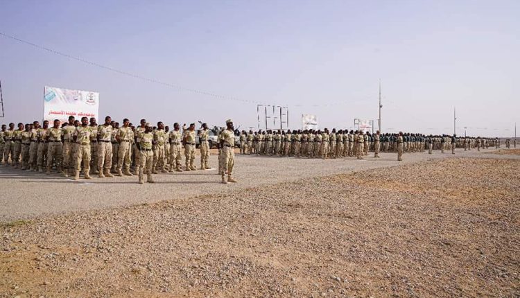 والمقاتلين الجدد من المجندين الحضارم وتم الاستعراض بمناسبة تخرجهم من التدريب بإشراف سعودي.