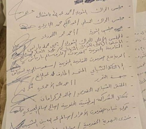 وأصدرت مكونات وقوى الحراك الجنوبي الموالية للانتقالي بياناً أعلنت فيه تأييدها إشهار “مجلس حضرموت الوطني” المشكل من السعودية.
