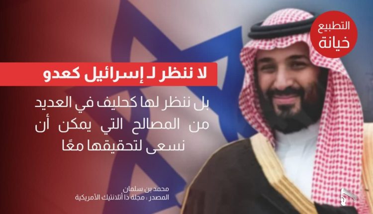 يأتي ذلك خلال مقابلة نشرتها قناة فوكس نيوز الامريكية.. ونفى بن سلمان وقفه مباحثات التطبيع، مشيراً إلى إستمرار المفاوضات التي تقودها واشنطن وآملاً في التوصل إلى النقطة التي تهدف لها أمريكا بالتطبيع وعودة إسرائيل كعنصر مهم في الشرق الأوسط- حسب وصفه.
