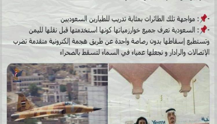 وتداولت حسابات تتبع الاستخبارات السعودية على مواقع التواصل الاجتماعي بيان تتحدث فيها عن امتلاك من وصفتهم بـ”الحوثيين” لأكثر من 12 مقاتلة حربية بعضها من نوع  “F-5”.