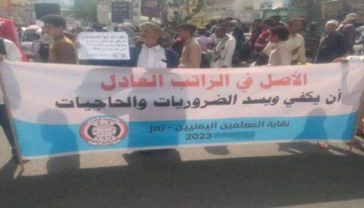 بعد 5 أسابيع من إضراب المعلمين.. إستمرار إحتجاجات المعلمين في تعز..!