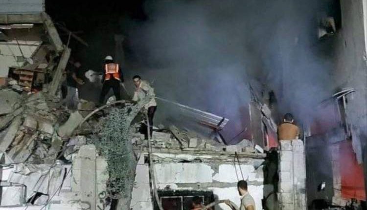 في حين سقط 10 شهداء وأصيب آخرون بغارة اسرائيلية على منزلاً في شارع العجارمة المكتظ بالسكان شرقي مخيم جباليا شمالي القطاع.