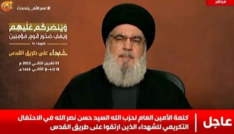 وقال حسن نصر الله في أول خطاب له منذ إطلاق حركة حماس عملية “طوفان الأقصى” في السابع من أكتوبر الماضي “الإخوة الشرفاء في اليمن وبشكل علني ورسمي وبالرغم من التهديدات الأمريكية والغربية أرسلوا صواريخ وطائرات مسيرة”.