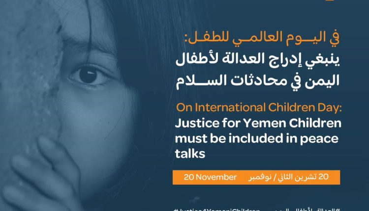 بيان مشترك من 43 منظمة محلية ودولية بمناسبة اليوم العالمي للطفل.. مؤسسة “رصد“ لحقوق الإنسان تدعو إلى إدراج العدالة لأطفال اليمن ضمن محادثات السلام الجارية..!