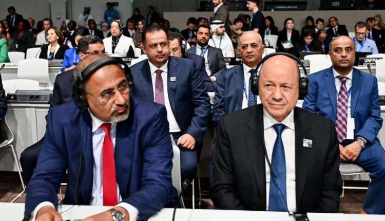 فيما كان ممثلي البلدان المشاركة في مؤتمر المناخ يتقدمون بكرس واحد على الطاولة المستديرة للمؤتمر العالمي المقام في إمارة دبي، كان رشاد العليمي رئيس المجلس الرئاسي وعضو المجلس عيدروس الزبيدي – رئيس المجلس الانتقالي يتزاحما أمام لوحة اليمن.