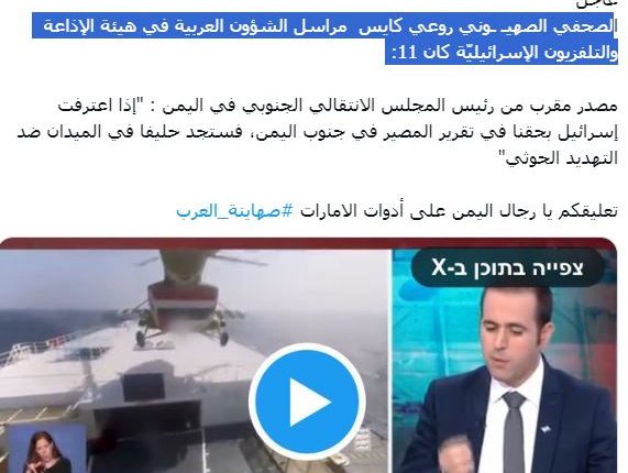 وأشار الصحفي الإسرائيلي إيدي كوهين إلى رهان بلاده على بديل الإنتقالي طارق صالح، قائد الفصائل الموالية للإمارات بالساحل الغربي.