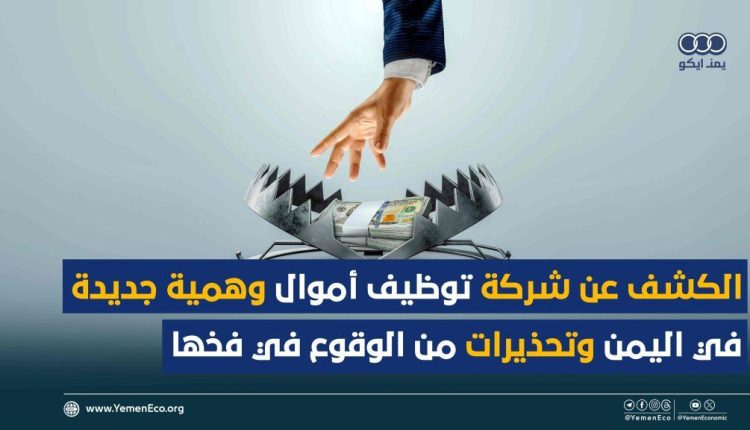 وسبق أن نشر موقع “يمن إيكو” تحذيرات لاقتصاديين وناشطين على مواقع التواصل الاجتماعي من ظهور شركات وهمية جديدة تستهدف أموال ومدخرات المواطنين، تحت مسمى مساهمات، مع وعود بأرباح مغرية.