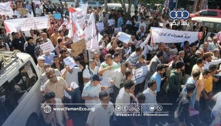 تعز.. متظاهرون يطالبون بتشغيل الكهرباء الحكومية وتوفير الخدمات..!