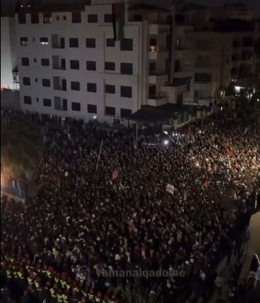 وبثت قنوات تلفزيونية، مشاهد لآلاف المتظاهرين في عمّان وهم يرددون بصوت واحد “الموت لأمريكا.. الموت لإسرائيل”.