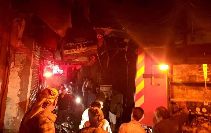 حريق يتسبب بإنفجار اسطوانة غاز في محل تجاري في صنعاء القديمة..!