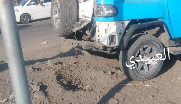 ولم تسجل سقوط ضحايا عدى أضرار بالمركبة التي تتبع أمن عدن.