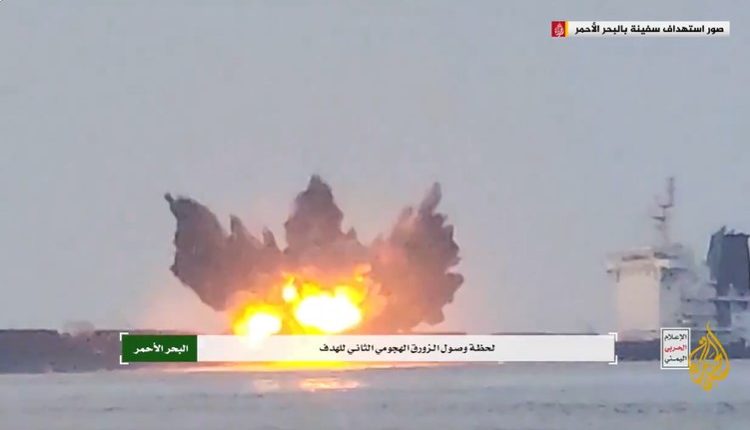 صنعاء تبث مشاهد مصورة لاستهداف واغراق السفينة توتور في البحر الأحمر.. “فيديو“..!