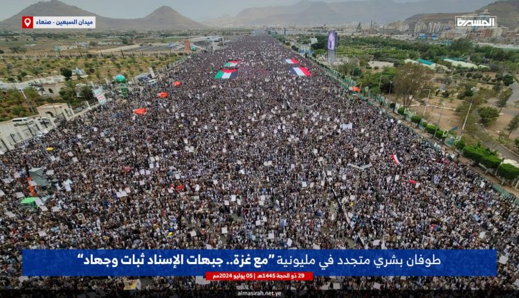 وعبرت الحشود الجماهيرية، عن أسفها “للتجاهل التام لتلك الجرائم من قبل المنظمات والأنظمة العربية التي لا تزال تصنف المجاهدين في فلسطين وحزب الله وشعبنا اليمني بالإرهاب”، مشيدين في ذات الوقت “باستمرار الحراك الطلابي في الجامعات الأمريكية والأوروبية التي تواجه التعتيم الإعلامي والإجراءات القمعية والمحاكمات الظالمة”.