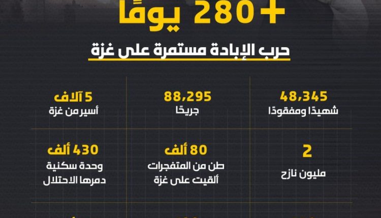 غزة| بعد 280 يوم من حرب الإبادة.. الكشف عن إحصائية فلسطينية مروعة لجرائم الاحتلال..!