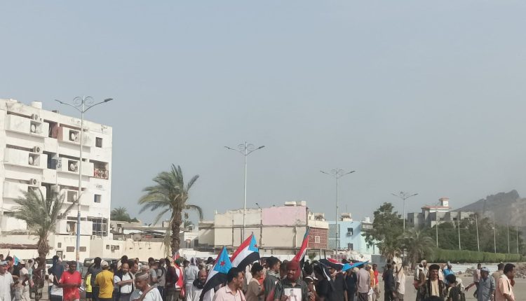 تظاهر آلاف المواطنين، اليوم الثلاثاء، تضامناً، مع المقدم علي عشال الجعدني، المختطف لدى قوات الإنتقالي المدعومة إماراتياً، بالعاصمة المؤقتة عدن جنوب البلاد.