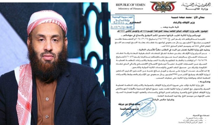 كشفت وثائق رسمية عن اختلاس وزير الأوقاف بحكومة الشرعية محمد عيضة شبيبة أكثر من (337) مليون ريال سعودي من حسابات الحج.