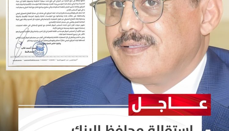 أعلن محافظ البنك المركزي اليمني في عدن، أحمد غالب المعبقي، الثلاثاء، عن تقديم استقالته رسمياً إلى مجلس القيادة الرئاسي عقب إلغاء قراراته الأخيرة ضد البنوك التجارية والأهلية في صنعاء.
