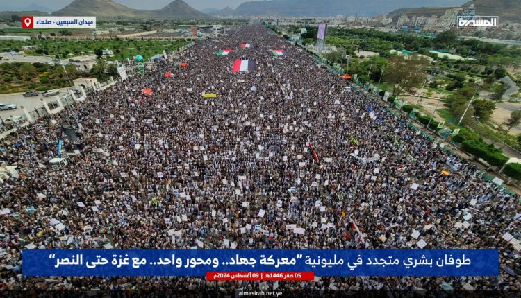 وأكد بيان المسيرات “المليونية” التي خرجت اليوم تحت شعار “معركة جهاد ومحور واحد.. مع غزة حتى النصر”، استمرار اليمنيون بالجهاد نصرة لغزة “بالتعبئة والتحشيد والتبرع بالمال وبمختلف الفعاليات والأنشطة وبالمقاطعة الاقتصادية للأعداء”.