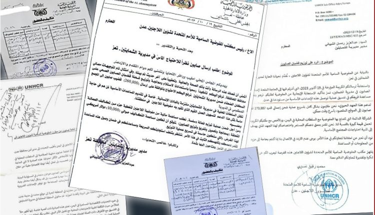 وقال الصحفي صالح الحنشي ـ ان فضيحة الفساد طرفاها المفوضية السامية للأمم المتحدة لشئون اللاجئين بعدن ، ومدير عام مديرية “الشمايتين” في محافظة تعز.