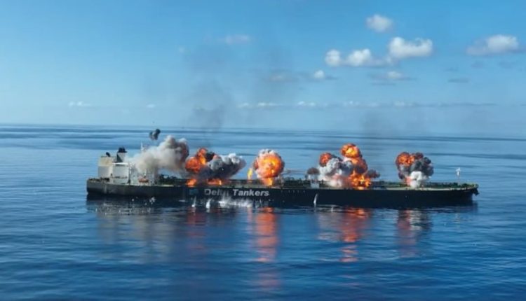 بثت قوات صنعاء مشاهد جديدة لاقتحام وإحراق السفينة اليونانية “SOUNION” في البحر الأحمر.
