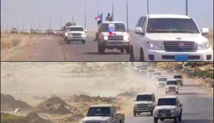 كان كان الموكب يضم مئات الاطقم والعربات المدرعة والمقاتلين وقد توجه للمشاركة في تظاهرة في أبين المجاورة تحت شعار “مليونية عشال الثانية”.