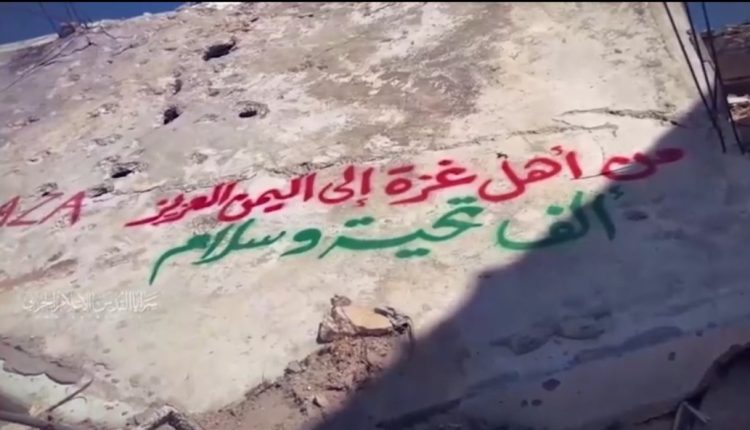 وكانت سرايا القدس، الجناح العسكري لحركة الجهاد الإسلامي، قد نشرت فيديو يظهر تفاصيل جداريات من تحت أنقاض غزة، تشير إلى الإشادة بالدعم اليمني للشعب الفلسطيني.