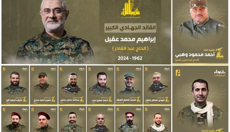 لبنان| حزب الله ينعي رسمياً استشهاد ابرز قياداتها “إبراهيم عقيل وأحمد وهبي“ وعدداً من مقاتليه..!