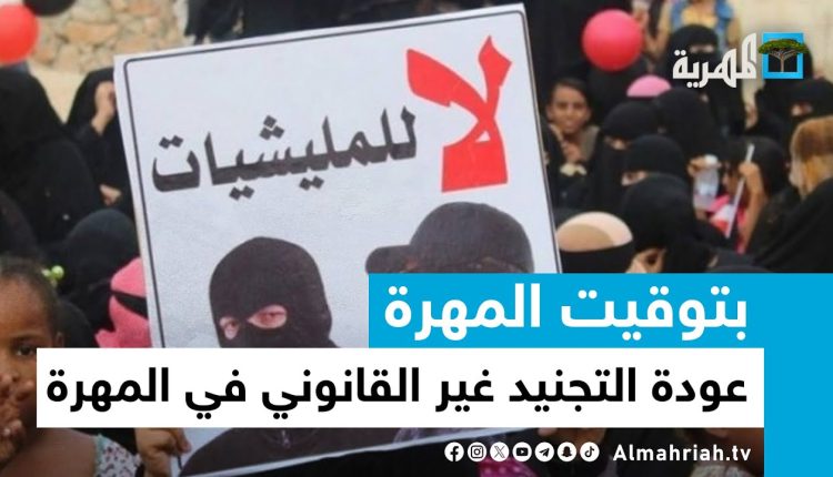 وحذر رعفيت، من محاولة تحويل المهرة إلى ساحة للتخريب والقتل، كما هو الحال في المحافظات التي تشكلت فيها تلك المليشيات، مؤكداً أن أبناء المهرة لن يسمحوا لمثل هذه المليشيات ومهددا بالعودة إلى الساحات حال سمح لهذه المليشيات بالتجنيد في المحافظة”.
