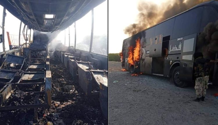 احترقت حافلة للنقل الجماعي في منطقة حسان بمحافظة أبين كانت قادمة من السعودية.