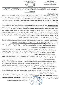 طالب مجلس “تنسيق النقابات ومنظمات المجتمع المدني” الحكومة التابعة للتحالف بصرف مرتبات موظفي السلطتين المحلية والمركزية بما فيهم النازحين، وتنفيذ التسويات وفق المؤهل وسنوات الخدمة الموقوفة منذ عام 2012م.