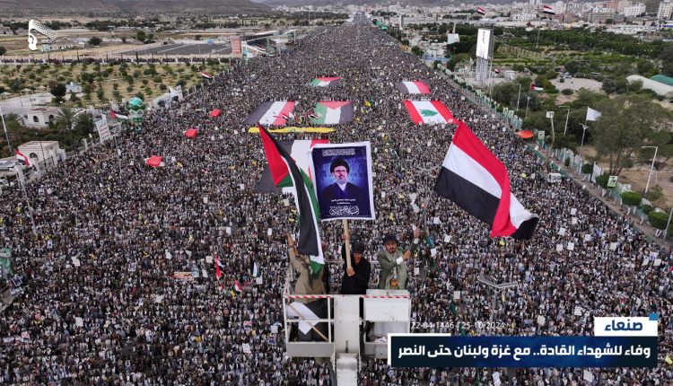 احتضن ميدان السبعين في العاصمة صنعاء والعديد من الساحات في المحافظات اليمنية، اليوم الجمعة، مسيرات مليونية تحت شعار “وفاء للشهداء القادة.. مع غزة ولبنان حتى النصر”.