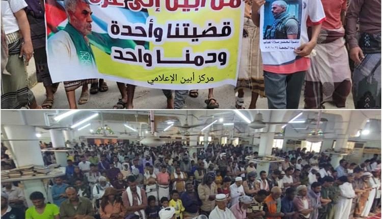 بحضور جمع غفير من المصلين، أقيمت في محافظة أبين بعد أداء صلاة الجمعة في جامع زنجبار بعاصمة المحافظة صلاة الغائب على قائد مقاومة حماس، الشهيد يحيى السنوار، وجميع الشهداء الذين ارتقوا إلى بارئهم، تقديراً لروح الشهداء والاعتزاز بتضحياتهم العظيمة، وتعزيزاً للروح الوطنية والصمود في وجه الغاصب المحتل.