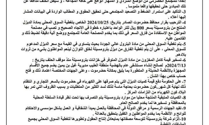 مؤكداً “استمرار الضغط والتصعيد المجتمعي حتى تحقيق الحقوق والمطالب الواردة في البيانات المشار إليها أعلاه”.
