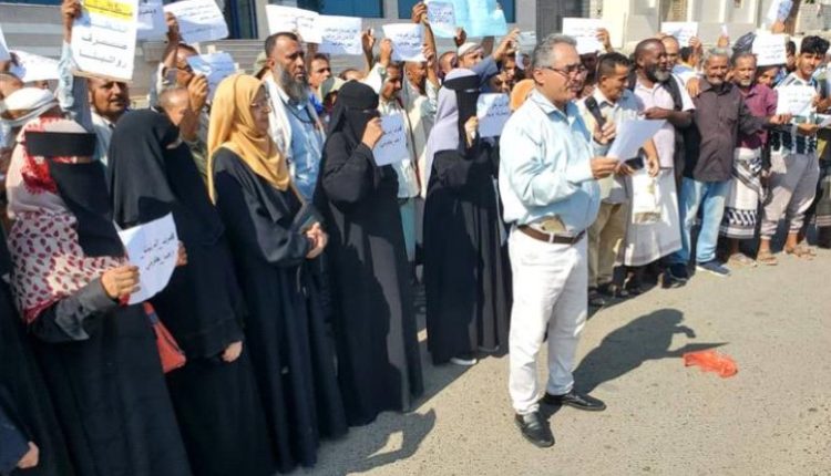 “عدن“| احتجاجات للموظفين النازحين أمام قصر المعاشيق للمطالبة بإنهاء التعسفات والابتزازات..!