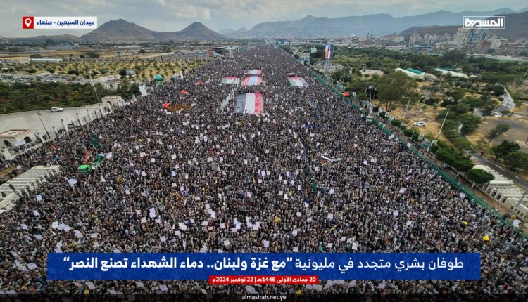 وجدد اليمنيون التأكيد على استمرارهم “بالجهاد في سبيل الله في معركة الفتح الموعود والجهاد المقدس حتى وقف العدوان على غزة ولبنان”، مباركين في ذات الوقت “الانتصارات المتواصلة وآخرها إجبار حاملة الطائرات الأمريكية (إبراهام لينكولن) على الفرار”.