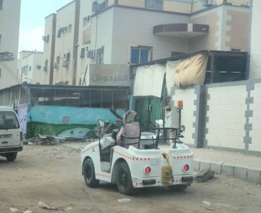وتداول ناشطون صوراً لسيارة الخدمات الأرضية الخاصة بمطار عدن وهي تجوب شوارع مدينة إنماء.