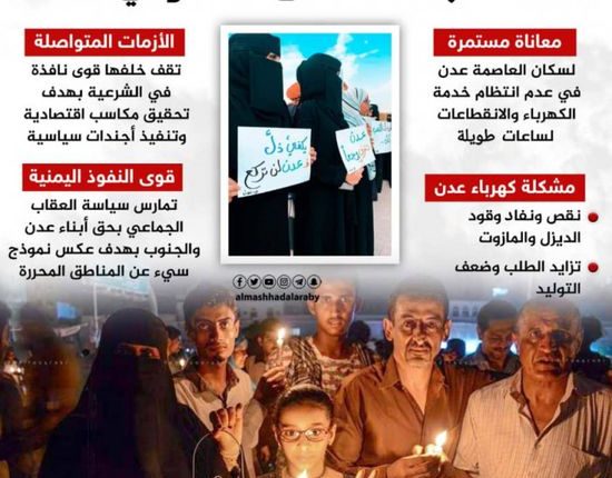 وأوضحت مصادر إعلامية تابعة للتحالف أن عدن دخلت أزمة حقيقية في خدمة الكهرباء خلال اليومين الماضيين، لترتفع ساعات الانقطاع إلى 9 ساعات مقابل ساعتين من العمل في مناطق المدينة.