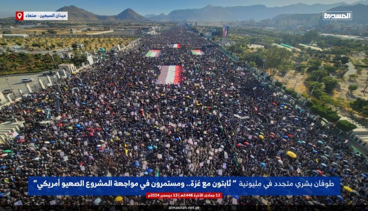 ودعا اليمنيون في مسيراتهم التي وصفت بـ”المليونية”، “الجميع للقيام بمسؤولياتهم ابتداءً بالشعب السوري وكل دول المنطقة شعوباً وأنظمة وأحزاباً وجماعات لأن مخططات الأعداء لا تستثني أحداً”.