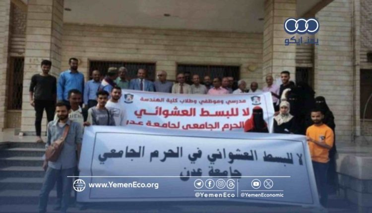 وسبق أن نظم أعضاء مجلس جامعة عدن، وقفة احتجاجية في مدينة الشعب بمديرية البريقة، رفضاً للاعتداءات المتكررة وعمليات البسط التي تتعرض لها أجزاء واسعة من أراضي الحرم الجامعي، من قبل أشخاص نافذين في المحافظة التي تسيطر عليها قوات المجلس الانتقالي الجنوبي.