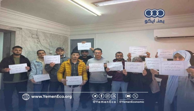 نظم الطلاب اليمنيون المبتعثون للدراسة في مصر، الإثنين، وقفة احتجاجية، نددوا خلالها بوقف مستحقاتهم المالية منذ عام 2023.