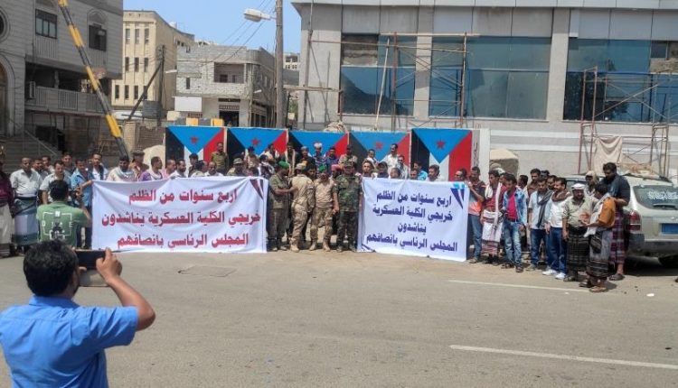ونقلت صحيفة “عدن الغد” عن الخريجين قولهم: “إن هذه الوقفة هي الرابعة لنا على التوالي، ونحن نجري خلف حقوقنا المسلوبة وللأسف لا يوجد أي تجاوب من القيادة العليا”.