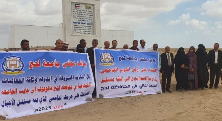 استنكر مجلس جامعة لحج، الخميس، الاعتداءات ومحاولات البسط على أراضي الجامعة، من قبل جهات مدعومة من السلطة المحلية في المحافظة.