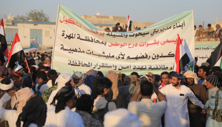 وجدد البيان مضي أبناء المهرة في “الخطوات التصعيدية لمواجهة كل من تسول له نفسه المساس بأمن واستقرار المحافظة، ومن يسعى لجلب الفتن والجماعات المتطرفة ونرفض الإرهاب والتطرف والغلو أياً كان شكله أو نوعه”.