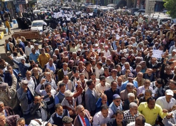تظاهر المعلمون في مدينة تعز، الأحد، للمطالبة برفع الأجور وصرف وانتظام مرتباتهم ووضع حد لتدهور العملة الوطنية.