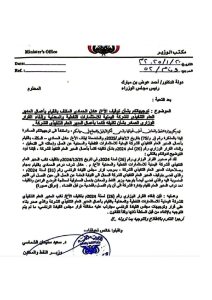 وكشفت وثيقة رسمية- صدرت الإثنين عن الوزارة وموجهة لرئيس الوزراء- عن إصرار بن مبارك على تنفيذ توجيهاته الصادرة للوزارة في الـ17 من يناير الجاري، بشأن إيقاف القائم بأعمال المدير العام التنفيذي عادل الحمادي، وإحالته للتحقيق وإلغاء قرار التكليف الوزاري.
