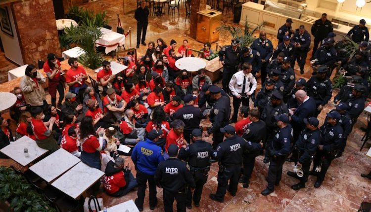 اقتحم عشرات النشطاء المناصرين للفلسطينيين برج ترامب بنيويورك وتظاهروا في بهوه احتجاجاً على اعتقال الطالب الفلسطيني محمود خليل، مطالبين بالإفراج عنه ووقف الدعم الأمريكي لإسرائيل.